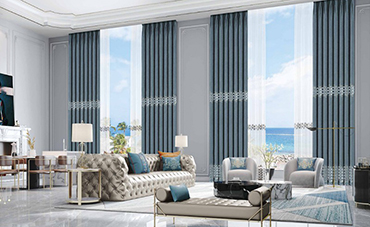 把窗簾放在窗簾架上,利用設(shè)備自帶120度高溫蒸汽對織物進行均勻的高溫蒸燙。